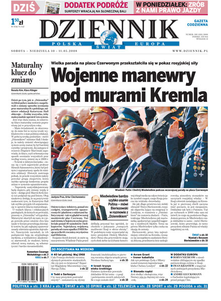 Wielka parada na placu Czerwonym przekształciła się w pokaz rosyjskiej siły; Sejm znosi abonament; po publikacjach „Dziennika” MEN obiecuje poprawki w systemie oceniania egzaminu dojrzałości; Borys Bieriezowski ocenia: Miedwiediew usunie Putina w niebyt.