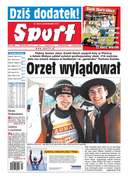 Piękny koniec zimy dla polskich sportowców: Kamil Stoch wygrał loty w Planicy, Adam Małysz oddał ostatni skok w swojej karierze, a Justyna Kowalczyk odebrała Kryształową Kulę; przegląd najciekawszych wydarzeń 19. kolejki piłkarskiej ekstraklasy; Witalij Kliczko w kontrowersyjnych okolicznościach po raz szósty obronił pas mistrza WBC; zespół Vive Targi Kielce po raz trzeci z rzędu zdobył Puchar Polski.