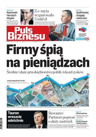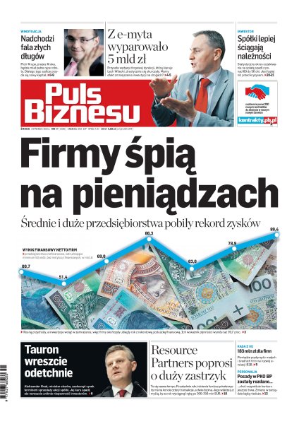 Firmy śpią na pieniądzach – średnie i duże przedsiębiorstwa pobiły rekord zysków; przychody z opłat elektronicznych będą o pięć mld zł niższe od zakładanych; w dłuższej perspektywie sprzedaż akcji Tauronu przez państwo przysłuży się spółce; jak będzie wyglądał nowy zarząd PKO BP; większość spółek ściąga swoje należności szybciej niż przed kryzysem.