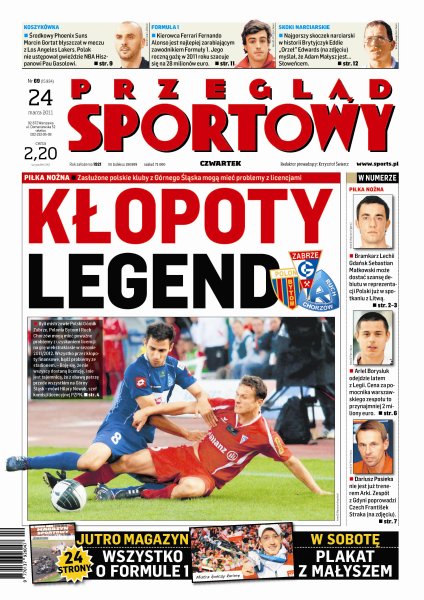 Zasłużone dla polskiej piłki nożnej kluby z Górnego Śląska takie jak Górnik Zabrze, Ruch Chorzów czy Polonia Bytom mogą mieć problemy z licencją; bramkarz Lechii Gdańsk Sebastian Małkowski może dostać szansę debiutu w reprezentacji Polski; Marcin Gortat błyszczał w meczu z Los Angeles Lakers; Fernando Alonso jest najlepiej zarabiającym zawodnikiem Formuły 1, jego roczną gażę w 2011 roku szacuje się na 28 milionów euro.