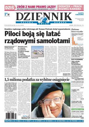 Piloci z pułku dla VIP-ów rezygnują z pracy, ks. Michał Heller musi zapłacić 1,5 mln podatku od nagrody, apteki wyłudzają miliony z NFZ, zmiany w egzaminach na prawo jazdy, czaszka hobbita z Flores ma ślady współczesnej obróbki dentystycznej, latem mogą nastąpić przerwy w dostawach prądu, Wisła Kraków świętuje tytuł, PZPN zatwierdził kary za korupcję.