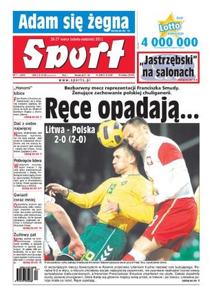 Polska reprezentacja piłkarska przegrała z Litwą mecz towarzyski; kibice Ruchu Chorzów zadeklarowali, że zapłacą grzywnę nałożoną na klub po Wielkich Derbach Śląska; setny w historii mecz piłki nożnej między Anglią a Walią; rozmowa z Janem Urbanem, nowym trenerem Zagłębia Lubin; turniej finałowy siatkówki w Bolzano; Adam Małysz kończy dziś siedemnastoletnią karierę.