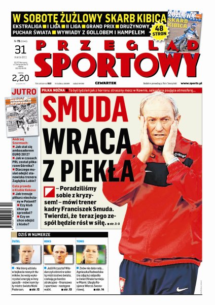 To był straszny tydzień dla polskiej reprezentacji piłkarskiej, trener Franciszek Smuda twierdzi, że od teraz jego zespół będzie rósł w siłę; Nicki Pedersen mówi, dlaczego nie bierze udziału w bojkocie nowych tłumików; jeśli Krzysztof Włodarczyk wygra swoją najbliższą walkę, to czekają go ciekawe propozycje; Agnieszka Radwańska odpadła z turnieju w Miami.