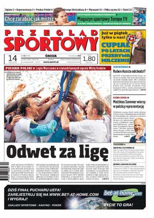 Legia Warszawa wygrała w karnych Puchar Polski, kolejny skandal z udziałem pseudokibiców, Matthias Sammer mówi, że Polska na Euro wyjdzie z grupy, wywiad z Mateuszem Sawrymowiczem, Władysław Kozakiewicz: nie mamy prawa krytykować Sawrymowicza za to, że chce zmienić obywatelstwo, żużlowcy mają startować w Australii, Malezji i USA, pogłoski o odejściu Rubena Acosty, plan przygotowań Adama Małysza do nowego sezonu.