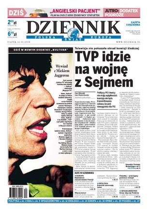 Telewizja nie pokazała obrad komisji śledczej, spada poparcie dla rządu Donalda Tuska, rozpoczęto budowę stadionu w Warszawie, dyplomatyczna ofensywa Lecha Kaczyńskiego w Izraelu, wywiad z Grzegorzem Schetyną, policyjne radiowozy będą środkami przymusu bezpośredniego, rozmowa z Mickiem Jaggerem.