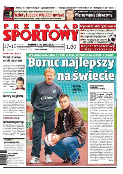 Gordon Strachan chwali Artura Boruca i polską szkołę bramkarzy, koniec z warunkowymi licencjami na grę w ekstraklasie, złodzieje próbowali ukraść samochody reprezentantów Polski, skład kadry Niemiec na mistrzostwa Europy, najważniejsze mecze sezonu Polaków grających za granicą, Marco Bonitta jest spokojny o swoje dziewczęta, siatkarze wygrali z Czarnogórą, prestiżowa nagroda dla Roberta Kubicy, Lewis Hamilton ma szansę na 600 mln euro.