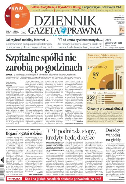 Dziennik Gazeta Prawna – codziennie obiektywne i rzetelne informacje z kraju i ze świata. Piszemy o tym, co dziś ważne i odpowiadamy na Wasze pytania – szczególnie te związane z obecnymi wyzwaniami tj. pandemia, praca zdalna. Na bieżąco wyjaśniamy zmieniające się przepisy. Wspieramy się wyjaśnieniami ministerstw i urzędów. Pomagamy unikać błędów i ostrzegamy, jakie są kary. Ponadto w każdy piątek specjalne magazynowe wydanie Dziennika Gazety Prawnej w całości z tekstami społeczno-ekonomicznymi.