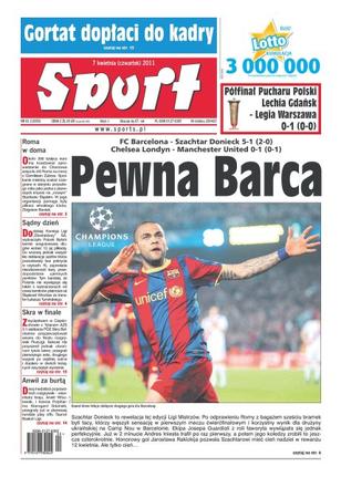 FC Barcelona zwyciężyła z rewelacyjnym jak dotychczas Szachtarem Donieck 5:1; Chelsea Londyn uległa Manchesterowi United 0:1; PGE Skra Bełchatów zwycięstwem z Tytanem AZS przypieczętowała awans do finału rozgrywek PlusLigi; Anwil Włocławek i Polpharma Starogard Gdański przegrały już w pierwszej rundzie play offu Tauron Basket Ligi.