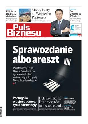 Dlaczego dokumenty są niezwykle krytyczne dla faworyta konkursu na członka zarządu PZU; farma wiatrowa w Kobylnicy to pierwszy wspólny projekt BRE i Commerzbanku w branży energii odnawialnej; rząd zmienia system kar dla firm wytwarzających odpady; oszczędzający na starość będą mogli od stycznia odpisać od podstawy opodatkowania 4 proc.; rząd w Lizbonie stracił zdolność regulowania zobowiązań; wartość ofert publicznych, które trwają lub wkrótce mają się rozpocząć, może przekroczyć 1,2 mld zł.