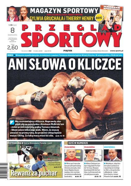 Wreszcie zapadła decyzja, że kolejnym rywalem Tomasza Adamka będzie Witalij Kliczko; jeśli Górnik wygra w Bełchatowie, włączy się do walki PGE GKS o miejsce gwarantujące udział w europejskich pucharach; Hiszpania, ojczyzna mistrzów świata, daje nam wszystko to, co ma najlepszego – 4 mecze Barcelony z Realem; jeśli ZAKSA Kędzierzyn-Koźle wykorzysta przewagę boiska, zagra w finale, natomiast jeśli choć raz zwycięży Asseco Resovia, czeka nas piąty mecz; Witalij Pietrow będzie chciał pokazać, że podium w Australii nie było przypadkiem.