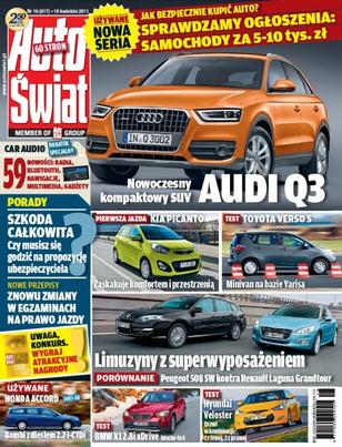 Audi Q3 - nowoczesny, kompaktowy SUV; Kia Picanto zaskakuje komfortem i przestrzenią; test Toyoty Verso S, minivana na każdą okazję oraz BMW X1 2.8i xDrive i Hyundai Veloster 1.6 GDI; Peugeot 508 SW kontra Renault Laguna Grandtour: porównanie prestiżowych limuzyn z Francji; jak bezpiecznie kupić auto za 5-10 tys. złotych; planowane zmiany w egzaminach na prawo jazdy; samochód używany: Honda Accord kombi z dieslem 2.2 i-CTDi. Dodatek specjalny: Car Audio - radia, nawigacje, multimedia, gadżety.