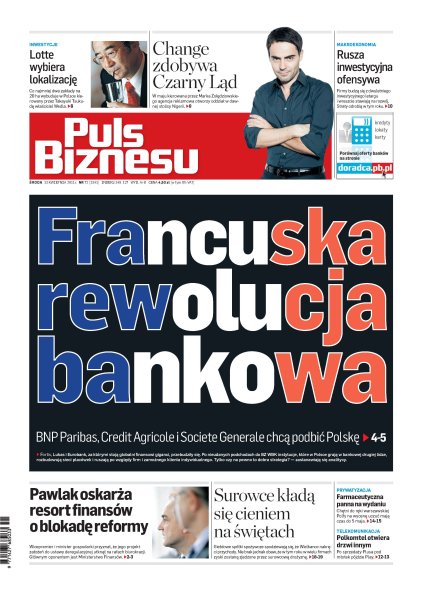 Co najmniej dwa zakłady na 20 ha wybuduje w Polsce kierowany przez Takayuki Tsukudę właściciel Wedla; w maju kierowana przez Marka Żołędziowskiego agencja reklamowa otworzy oddział w dawnej stolicy Nigerii; BNP Paribas, Credit Agricole i Societe Generale chcą podbić Polskę; wicepremier i minister gospodarki przyznał, że jego projekt założeń do ustawy deregulacyjnej utknął na rafach biurokracji; giełdowe spółki spożywcze spodziewają się, że Wielkanoc nakręci przychody; po sprzedaży Plusa pod młotek pójdzie Play.