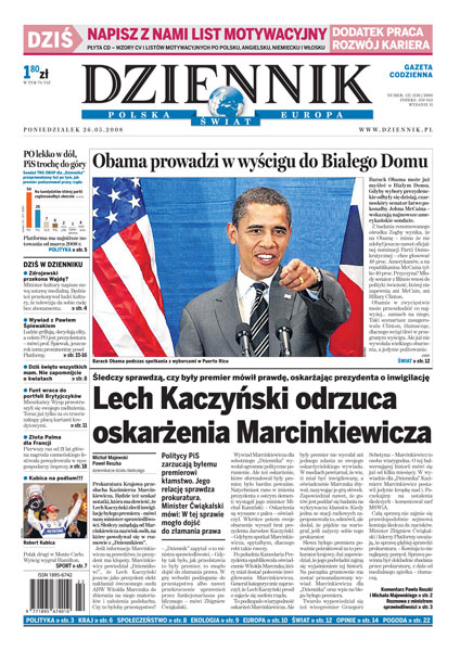Czy oskarżenia Kazimierza Marcinkiewicza są prawdziwe - prokuratura przesłucha byłego premiera; Barack Obama prowadzi w wyborach; elektrośmieci: Polska przoduje w niechlubnych statystykach; o znaczeniu UE na świecie zadecyduje silna armia; poradnik: co można zrobić na własnej działce i jak zdobyć niezbędne pozwolenia; podczas tegorocznego lata benzyna może kosztować nawet 5,50 zł. Sport: weekendowe triumfy polskich sportowców: Robert Kubica, Agnieszka Radwańska, Rune Holta, awans reprezentacji siatkarek.
