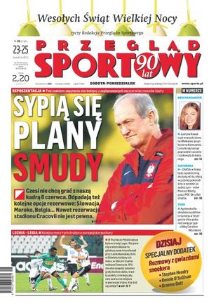 Kolejny z zaplanowanych meczów polskiej kadry piłki nożnej stoi pod znakiem zapytania; w sobotę Agnieszka Radwańska i Caroline Wozniacki będa walczyć o finał w tenisowym turnieju Porsche Open; rozmowa z Robertem Maaskantem, szkoleniowcem Wisły Kraków; rozmowa z Wojciechem Stawowym, trenerem GKS Katowice; Justyna Kowalczyk wróciła z Kamczatki; rozmowa z Mariuszem Wlazłym – atakującym Skry Bełchatów, która zdobyła złoty medal mistrzostw Polski w siatkówce; Maja Włoszczowska w sobotę wystartuje w pierwszym w sezonie wyścigu o Puchar Świata w kolarstwie górskim.