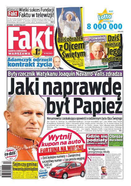 Niesamowita i zaskakująca opowieść o codziennym życiu Ojca Świętego Jana Pawła II; Adamczyk odrzucił kontrakt życia – nie chce wystąpić w „Tańcu z gwiazdami”; nie tylko Sejm czy ministrowie, ale i samorządy wydają pieniądze podatników na bezsensowne luksusy; gdzie podziały się dzieci z sekty „Niebo”; minister sprawiedliwości walczy o obroże dla agresywnych kibiców.