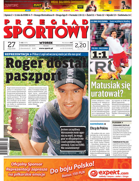 Roger Guerreiro dostał polski paszport; sparing z Macedonią - kolejny słaby mecz reprezentacji; Ryszard Tarasiewicz wywalczył awans ale przestał być trenerem Śląska; Piotr Małachowski pobił w Halle życiowy rekord mimo niekorzystnych warunków.