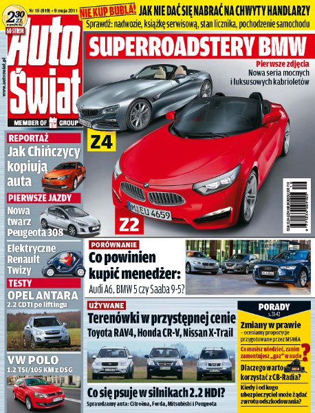 Nowe roadstery BMW – plany monachijskiego koncernu; salon w Szanghaju – wystawa kopii; Renault Twizy – skrzyżowanie skutera ze Smartem; Peugeot 308 po face liftingu; raport: miasta przyjazne kierowcom; porównanie w klasie wyższej: Audi A6, BMW serii 5 i Saab 9-5; Nissan Micra – kolejna część testu długodystansowego realizowanego z czytelniczkami; Opel Antara po modernizacji; Skoda Superb w bardzo oszczędnej wersji 1.6 TDI; Volkswagen Polo – trochę mniejszy Golf; elektryczny Citroën C-Zero; używane: popularne SUV-y z Japonii: Honda CR-V, Nissan X-Trail i Toyota RAV4; zakup auta używanego – uwaga na oszustów; silnik 2.2 HDI – popularny diesel instalowany w Citroënach, Fordach, Mitsubishi i Peugeotach; zmiany prawne – co nas czeka w najbliższej przyszłości; sposoby na oszczędną jazdę – cz. 4 LPG; CB-Radio w samochodzie; car audio – nowości targów AMICOM; prawo i praktyka: regres ubezpieczeniowy.
