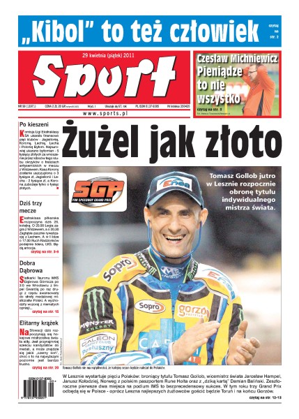 Tomasz Gollob jutro rozpocznie obronę tytułu indywidualnego mistrza świata na żużlu; Komisja Ligi Ekstraklasy SA ukarała finansowo pięć klubów; dziś rozpoczyna się 26. kolejka piłkarskiej ekstraklasy; na Słowacji startują hokejowe mistrzostwa świata; rozmowa z Czesławem Michniewiczem, trenerem Widzewa Łódź.