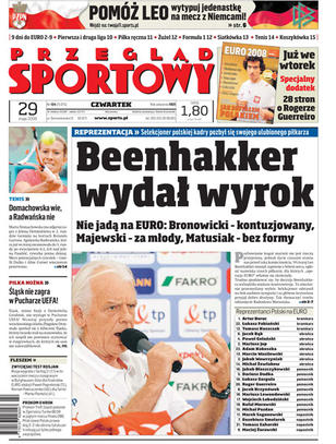 Leo Beenhakker dokonał wyboru - odpadli Bronowicki, Majewski, Matusiak; Śląsk nie zagra w Pucharze UEFA; Jakub Błaszczykowski szybko wraca do zdrowia po kontuzji; Roland Garros: Agnieszka Radwańska już w trzeciej rundzie, Marta Domachowska w drugiej; wielkie gwiazdy nieobecne na Euro.