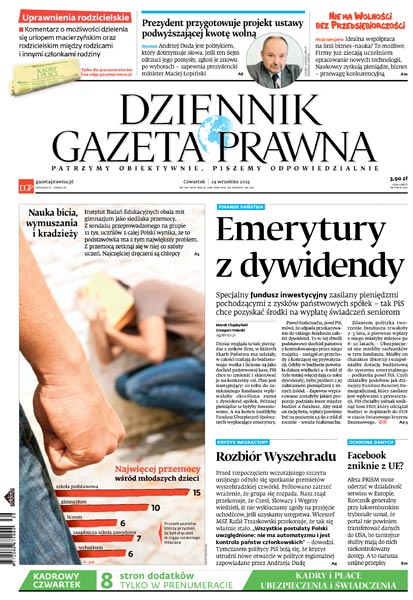 Dziennik Gazeta Prawna – codziennie obiektywne i rzetelne informacje z kraju i ze świata. Piszemy o tym, co dziś ważne i odpowiadamy na Wasze pytania – szczególnie te związane z obecnymi wyzwaniami tj. pandemia, praca zdalna. Na bieżąco wyjaśniamy zmieniające się przepisy. Wspieramy się wyjaśnieniami ministerstw i urzędów. Pomagamy unikać błędów i ostrzegamy, jakie są kary. Ponadto w każdy piątek specjalne magazynowe wydanie Dziennika Gazety Prawnej w całości z tekstami społeczno-ekonomicznymi.