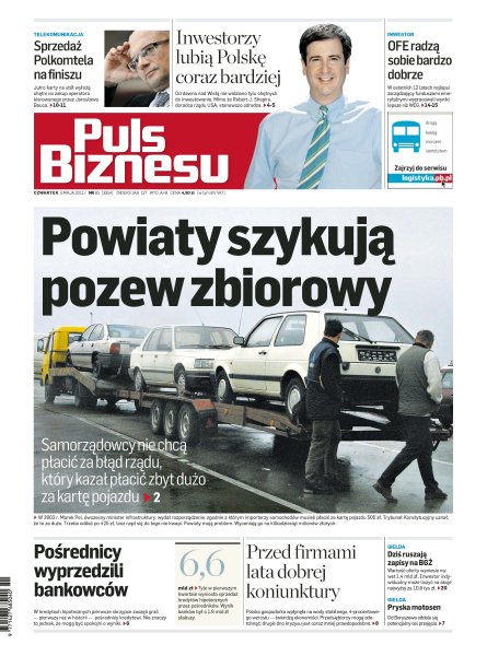 Jutro karty na stół wyłożą chętni na zakup Polkomtela; dlaczego inwestorzy lubią Polskę coraz bardziej; w ostatnich 12 latach najlepsi zarządzający funduszami emerytalnymi wypracowali wyniki lepsze niż WIG; samorządowcy nie chcą płacić za błąd rządu, który kazał płacić zbyt dużo za kartę pojazdu; polska gospodarka wpłynęła na wody stabilnego, 4-procentowego wzrostu – twierdzą ekonomiści; w kredytach hipotecznych pierwsze skrzypce zaczęli grać – pierwszy raz w historii – pośrednicy kredytowi.