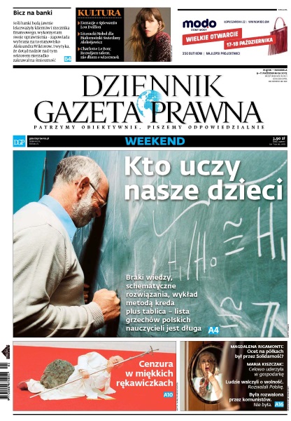 - w każdy piątek specjalne magazynowe wydanie Dziennika Gazety Prawnej oraz dodatek Kultura.