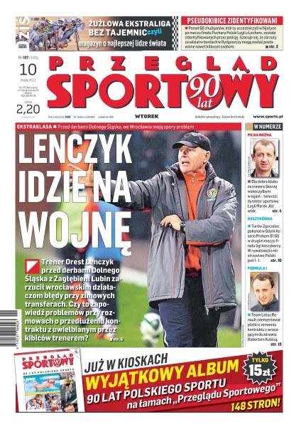 Lenczyk idzie na wojnę; pseudokibice zidentyfikowani; żużlowa ekstraliga bez tajemnic; dyrektor sportowy Legii skoczyłby za trenerem Skorżą w ogień; Turów Zgorzelec pokonał w Gdyni Asseco Prokom 81:66; team Lotus Renault zdementował plotki o zerwaniu kontraktu z wracającym do zdrowia Robertem Kubicą.