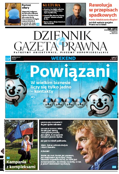 - w każdy piątek specjalne magazynowe wydanie Dziennika Gazety Prawnej oraz dodatek Kultura.