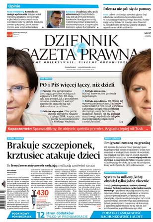 Dziennik Gazeta Prawna – codziennie obiektywne i rzetelne informacje z kraju i ze świata. Piszemy o tym, co dziś ważne i odpowiadamy na Wasze pytania – szczególnie te związane z obecnymi wyzwaniami tj. pandemia, praca zdalna. Na bieżąco wyjaśniamy zmieniające się przepisy. Wspieramy się wyjaśnieniami ministerstw i urzędów. Pomagamy unikać błędów i ostrzegamy, jakie są kary. Ponadto w każdy piątek specjalne magazynowe wydanie Dziennika Gazety Prawnej w całości z tekstami społeczno-ekonomicznymi.