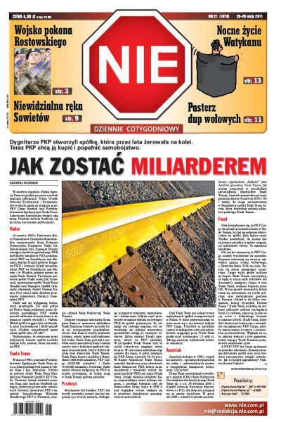 Dygnitarze PKP stworzyli spółkę, która przez lata żerowała na kolei - teraz PKP chce ją kupić i popełnić samobójstwo; polskie wojsko to studnia bez dna, w której zginą każde, największe nawet pieniądze; policja przepłaca za auta i motocykle; jak rosyjska telewizja przykleiła sobie temat; kto rządzi w Gdańsku; polski naukowiec udowadnia istnienie Boga; gdy Miedwiediew i Putin podróżują, Rosja pięknieje i się rozwija.