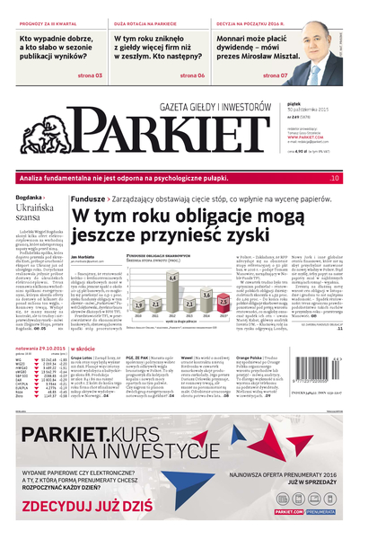 Największy w Polsce newsroom gospodarczy zbiera, analizuje i zgłębia dla Państwa najważniejsze informacje ze świata finansów. Codzienne wydanie „Parkietu”, sześć dni w tygodniu, to kilkadziesiąt artykułów o emitentach, instytucjach finansowych, gospodarce. To również opinie, felietony i wywiady z najważniejszymi ludźmi krajowej i globalnej finansjery.