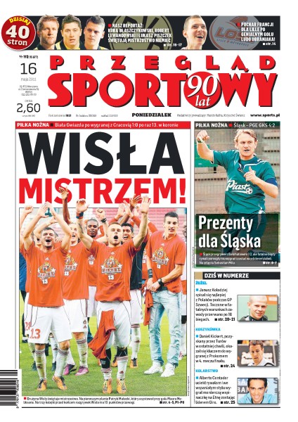 Wisła Kraków wywalczyła mistrzostwo Polski; Lille wywalczyło Puchar Francji, Manchester United został mistrzem Anglii, Borussia Dortmund mistrzem Niemiec; Janusz Kołodziej spisał się najlepiej z Polaków podczas żużlowego Grand Prix w Szwecji; Alberto Contador został liderem Giro d'Italia.