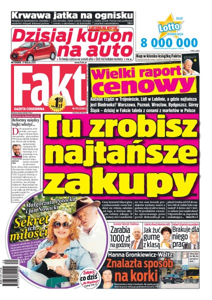 Wielki raport cenowy – gdzie robić dobre, ale tanie zakupy w największych polskich miastach; masakra w Sandomierzu – zazdrosny chłopak zabił nożem adoratora swojej ukochanej; Małgorzata Potocka i Jan Nowicki – poznaj sekret ich miłości; Hanna Gronkiewicz–Waltz znalazła sposób na korki w stolicy.