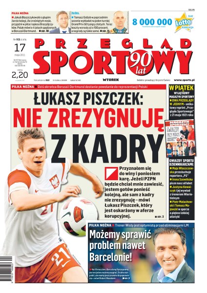 Dziś Łukasz Piszczek, obrońca Borussii Dortmund, dostanie powołanie do reprezentacji Polski; Jakub Błaszczykowski opowiada o latach spędzonych na niemieckich boiskach; Tomasz Gollob w poprzednim sezonie wykładał na jeden turniej Grand Prix 50 tys. złotych, teraz koszty wzrosły o 100 proc.; trener Wisły Kraków myśli optymistycznie o meczach eliminacyjnych do Ligi Mistrzów.
