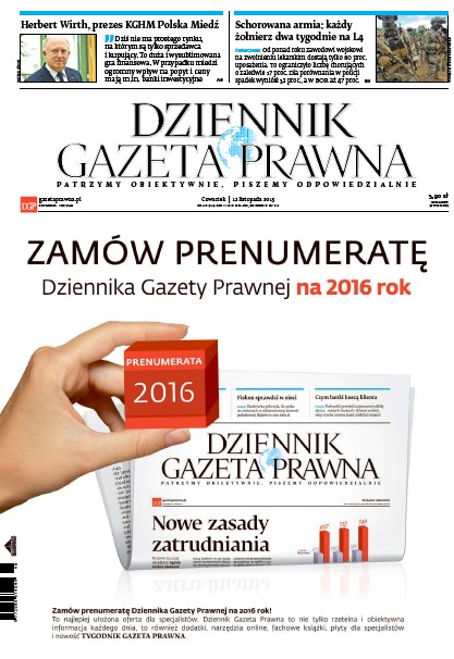 Dziennik Gazeta Prawna – codziennie obiektywne i rzetelne informacje z kraju i ze świata. Piszemy o tym, co dziś ważne i odpowiadamy na Wasze pytania – szczególnie te związane z obecnymi wyzwaniami tj. pandemia, praca zdalna. Na bieżąco wyjaśniamy zmieniające się przepisy. Wspieramy się wyjaśnieniami ministerstw i urzędów. Pomagamy unikać błędów i ostrzegamy, jakie są kary. Ponadto w każdy piątek specjalne magazynowe wydanie Dziennika Gazety Prawnej w całości z tekstami społeczno-ekonomicznymi.