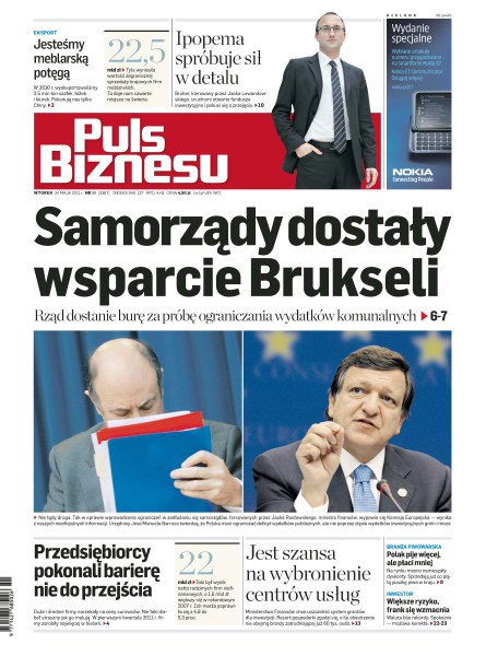 Polska jest meblarską potęgą, w eksporcie pokonują nas tylko Chiny; wg Komisji Europejskiej Polska musi ograniczać deficyt wydatków publicznych, ale nie poprzez cięcie wydatków inwestycyjnych gmin i miast; w pierwszym kwartale 2011 r. firmy zarobiły najwięcej w historii; Ministerstwo Finansów chce uszczelnić system grantów dla inwestycji; dyskonty sprzedają już co piątą puszkę piwa w kraju; frank się wzmacnia; T-Mobile może stworzyć przeciwwagę dla Tepsy.