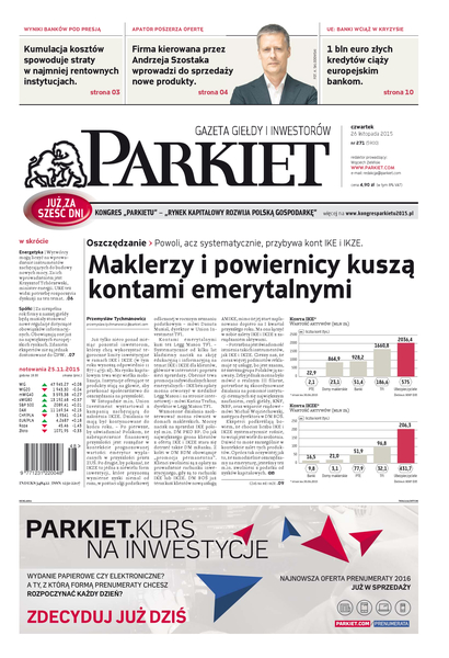 Gazeta Giełdy i Inwestorów Parkiet przyspiesza publikację e-wydania. Od poniedziałku, już od godz. 20.00, można kupić i przeczytać e-wydanie Parkietu, które w wersji papierowej ukaże się dopiero następnego dnia. Parkiet jest więc najświeższą gazetą finansową w Polsce.