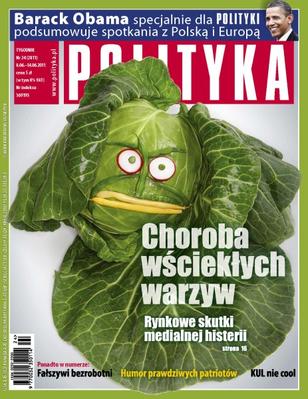 Barack Obama specjalnie dla Polityki podsumowuje spotkania z Polską i Europą; choroba wściekłych warzyw – rynkowe skutki medialnej histerii; fałszywi bezrobotni; humor prawdziwych patriotów; KUL jest mało cool; najstarszy język – taniec; kuszetką przez Rosję; Rycerze Chrystusa z Ustronia.