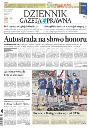 Autostrada na słowo honoru; po 4 czerwca nie było już powrotu; motocyklista musi stać w korku jak wszyscy; autobusowe linie za złotówkę; ustawy do kosza pisane; studenci z Białegostoku lepsi od NASA; jak wspólnota mieszkaniowa może przekształcić użytkowanie wieczyste na własność.