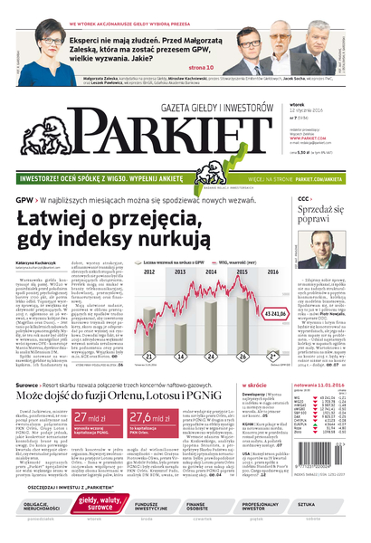 Największy w Polsce newsroom gospodarczy zbiera, analizuje i zgłębia dla Państwa najważniejsze informacje ze świata finansów. Codzienne wydanie „Parkietu”, sześć dni w tygodniu, to kilkadziesiąt artykułów o emitentach, instytucjach finansowych, gospodarce. To również opinie, felietony i wywiady z najważniejszymi ludźmi krajowej i globalnej finansjery.