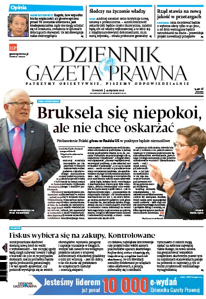 Wczoraj Komisja Europejska po raz pierwszy w historii zastosowała wobec państwa członkowskiego mechanizm obrony państwa prawa: poprosiła Polskę o informacje na temat zmian w funkcjonowaniu Trybunału Konstytucyjnego i mediów publicznych; Andrzej Seremet ostro krytykuje nową ustawę o prokuraturze; cena decydować będzie o wyborze oferty tylko w 40 proc., a od fi rm wymagane będzie zatrudnianie na etacie – przewiduje projekt nowelizacji przepisów dotyzących przetargów.