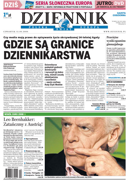 Emocje i komentarze przed meczem o wszystko z Austrią; rząd nie obniży akcyzy na paliwa; nowy szef Sojuszu wprowadza zmiany w SLD; oficjalne wyniki testów gimnazjalnych; granice dziennikarstwa - sprawa skrzywdzonej czternastolatki.