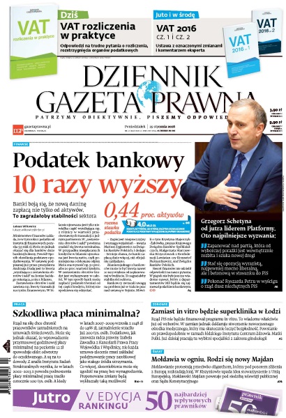 Banki boją się, że nową daninę zapłacą nie tylko od aktywów - to zagrażałoby stabilności sektora; rząd na siłę chce chronić pracowników zatrudnionych na umowach śmieciowych - może się jednak okazać, że wprowadzenie przymusowej godzinowej płacy minimalnej na poziomie 12 zł spowoduje efekt odwrotny do oczekiwanego; rząd PiS nie będzie finansował programu in vitro - w zamian jednak deklaruje stworzenie nowoczesnego ośrodka medycznego, który ma skutecznie leczyć bezpłodność; Mołdawianie protestują przeciwko oligarchom, którzy pod pozorem zbliżenia z Europą rozkradają kraj - w Kiszyniowie upada idea stowarzyszenie z Unią Europejską - mołdawski Majdan powstaje pod siedzibą telewizji publicznej oraz Sądu Konstytucyjnego.