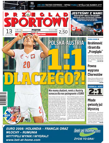 Euro 2008: remis z Austrią - z dużym prawdopodobieństwem możemy pożegnać się z mistrzostwami, wspaniałe interwencje Artura Boruca; pewna wygrana Chorwacji z Niemcami; wywiad ze Zlatanem Ibrahimoviciem i Avramem Grantem; Tirunesh Dibaba: postać jednej z największych gwiazd lekkoatletyki, rekordzistki świata na 5000 m.
