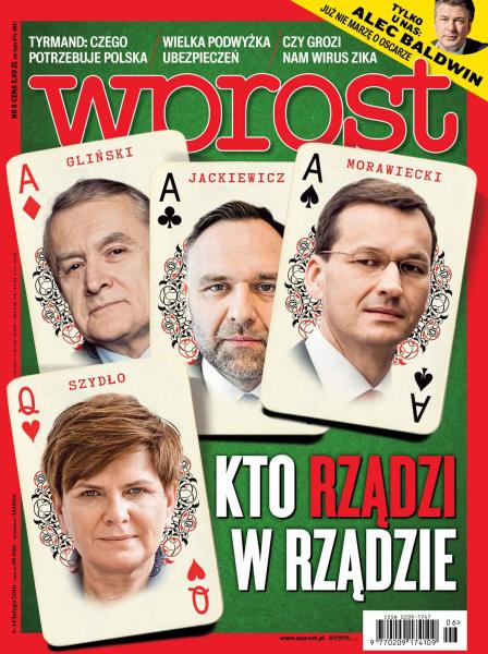 Kto rządzi w rządzie; po pierwsze: nie szkodzić – radzi Matthew Tyrmand; chcą nas skłócić – wywiad z Beatą Kempą, minister w kancelarii premiera; kółko z Cameronem – warszawskie spotkania i kalkulacje angielsko-polskie; ubezpieczenia będą drożeć; czy zika zaatakuje Polskę – nowy wirus coraz bliżej; Alec Baldwin o kinie; konspira w krótkich majteczkach: oryginalne metody walki z komuną.
