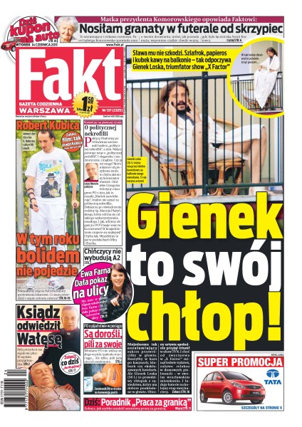 Gienek Loska, triumfator polskiej edycji „X Factor” to swój chłop – sława nie uderzyła mu do głowy i nadal zachowuje się jak normalny człowiek; Ewa Farna dała pokaz na ulicy; Lech Wałęsa przyjął księdza w szpitalu; w tym roku Robert Kubica z całą pewnością nie wsiądzie za kierownicę bolidu Formuły 1; Donald Tusk wyprawił piracką ucztę; zobacz nowy uśmiech marszałka Schetyny wart 20 tys. zł.