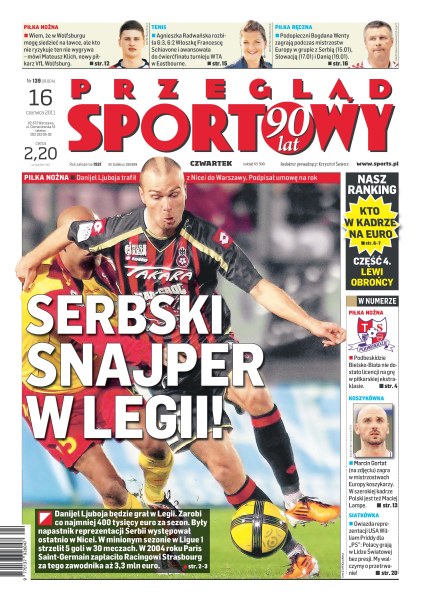Po transferze Michała Żewłakowa na Łazienkowską trafił kolejny doświadczony piłkarz, Danijel Ljuboja ma poprowadzić legionistów do mistrzostwa Polski; podstawowy problem Franciszka Smudy; wywiad z Mateuszem Klichem; poznaliśmy szeroki skład biało-czerwonych na EuroBasket; Agnieszka Radwańska w ćwierćfinale w Eastbourne.