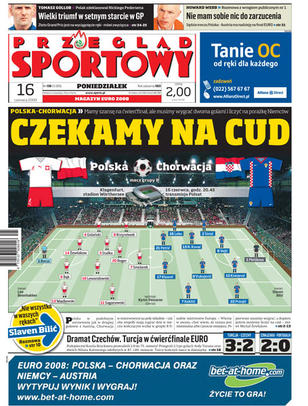 Tomasz Gollob zdeklasował Nickiego Pedersena w GP Danii; rozmowa z sędzią Howardem Webbem; polska reprezentacja wierzy w cud i wejście do ćwierćfinału - 11 stron analiz i wywiadów; komentarze do weekendowych i najbliższych spotkań Euro; polskie florecistki triumfatorkami turnieju drużynowego Pucharu Świata w Hawanie; Robert Kubica zdradził w Warszawie swoje plany na przyszłość.