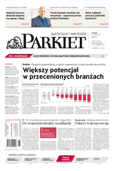 Największy w Polsce newsroom gospodarczy zbiera, analizuje i zgłębia dla Państwa najważniejsze informacje ze świata finansów. Codzienne wydanie „Parkietu”, sześć dni w tygodniu, to kilkadziesiąt artykułów o emitentach, instytucjach finansowych, gospodarce. To również opinie, felietony i wywiady z najważniejszymi ludźmi krajowej i globalnej finansjery.