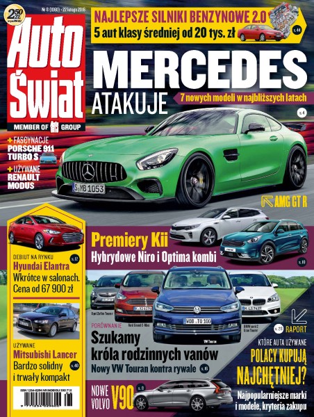 Aktualności: nowości Mercedesa, Volvo V90, Kia Optima SW i Kia Niro, Nissan X-Trail; testy: BMW serii 2 Gran Tourer, Ford Grand C-Max, Opel Zafira Tourer, VW Touran, Skoda Rapid, Kia Sportage, Honda Civic Sport; porady: jakich aut poszukują Polacy, auto uszkodzone na parkingu, sprzęgła – jak jeździć, żeby nie niszczyć, i kiedy wymieniać, konsument kontra sprzedawca; z drugiej ręki: Renault Modus (2004-12), Mitsubishi Lancer (od 2007 r.), benzyniaki 2.0 do aut klasy średniej; fascynacje: Porsche 911 Turbo S, Opel Tigra.